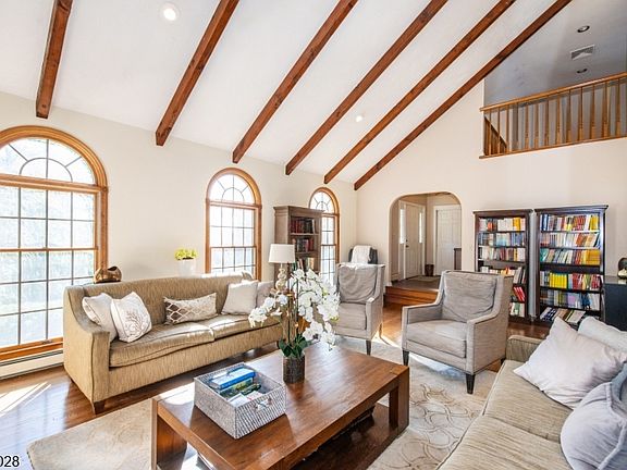 Beautiful, custom 4 bedroom plus Office, 3.5 bath colonial split-style home on an acre on a cul-de-sac in the desirable Lake Valhalla area of Montville. Large living room with cathedral wood-beamed ceiling, floor to ceiling stone fireplace. The eat-in kitchen features a Sub-Zero refrigerator, newer oven and dishwasher, granite countertops, built-in desk area and pantry, lots of cabinet storage. Both the kitchen and dining room have sliding doors onto the stone backyard patio. Upstairs are 3 bedrooms, all with large windows to take advantage of the views, including a primary bedroom with both a shower and Jacuzzi tub. Remodeled hall bathroom. A few steps up from the bedrooms is a sunny loft with skylight overlooking the living room. Downstairs from the foyer is a roomy, bright family room with an outside entrance to the large fenced-in side yard. This level also features a bedroom, office and full bathroom. Fully finished basement with laundry room provides more room for recreational activities, exercise equipment, etc.! Off the basement is a door to a workroom/storage space with another door up steps into the 2-car garage. both the driveway and patio are lighted. This home has lots of character and is perfect for anyone looking for privacy and peace and quiet. Added comfort and security with a whole-house generator.PRICE REDUCE TO ACCELERATE SALE