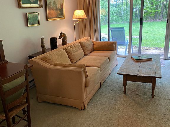 Just two miles from the base of Sugarbush is this one bedroom, ground floor condo. Its a perfect getaway spot in Summer & Winter. The open living area has a fireplace with an electric stove insert as well as a sliding glass door that lets in lots of natural light, and opens onto the patio and large open lawn. It is located near the back of the property in close proximity to the tennis courts. There is a small storage closet outside the entrance that is perfect for skis and other outdoor toys.