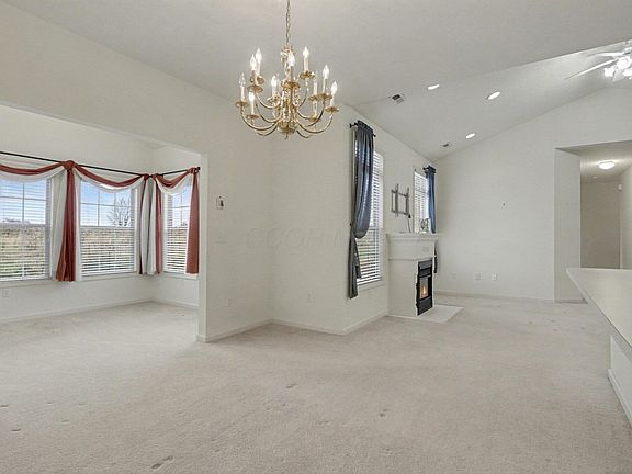 Hard to find ranch style condo in Heathergreen, across from the Pickaway Country Club. This home is an end unit with covered front porch and a large private back patio to take in the beautiful view. Very well maintained throughout and boasts an open floor plan with vaulted ceilings, electric fireplace in the greatroom. The kitchen features ample cabinetry & breakfast bar open to the greatroom, dining room and 4 season room. Lots of natural lighting! Among the 3 bedrooms, the main bedroom hosts a large walk in closet with lots of storage and private bath with walk in shower. Laundry room is also on the 1st floor. All of your everyday conveniences are in close proximity to your new home! Being sold 'AS IS'.