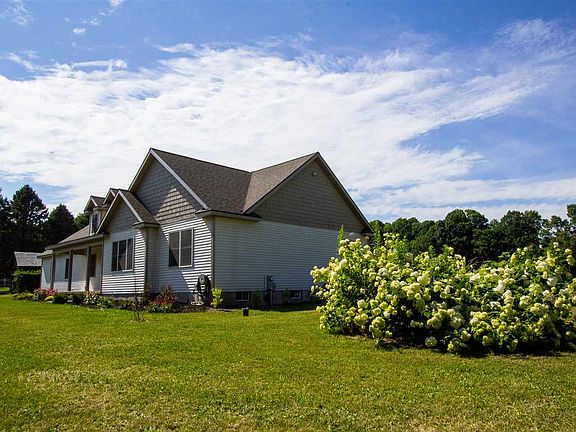 Like new, custom-built ranch w/ 1.069 acres, priced to sell! Single floor living w/ a modern farmhouse feel on a quiet street. NEW paint, SS appliances, Brazilian cherry floors, walk-in closets, tile bathrooms, master suite, covered front porch. Wonderful natural light w/ an open floor plan, vaulted ceiling, paddle fan, gas fireplace, 2 car attached garage & rustic barn. HVAC plenum in place for A/C. Full, finish-ready basement w/ 9ft ceilings & bilco door. Lake George Schools & low taxes! It's beautiful!