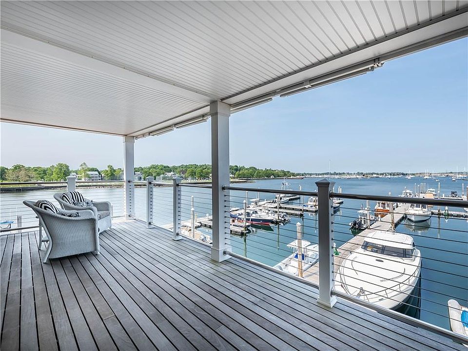 Nestled in the heart of Newport, this waterfront gem at Coddington Landing is truly exceptional! A seamless merger of two units, this residence offers a sprawling living space slightly exceeding 2500 square feet. Upon entry, the south side greets you with an expansive open floor plan featuring a generously sized kitchen adorned with granite counters, a cozy living room accentuated by a wood-burning fireplace, and a designated dining area. Step out onto the covered deck to enjoy breathtaking views of the harbor, boats, and docks, creating an idyllic setting for relaxation and entertainment. Adding to its allure, this residence features a guest bedroom suite complete with a charming sitting area, providing a welcoming retreat for visitors. The primary suite offers direct access to its own covered deck, showcasing the same picturesque harbor views. Adjacent to the primary suite, a den and office space await, offering versatility and functionality. Additionally, there are two bedrooms with a well appointment full bathroom. Completing this extraordinary offering, the residence includes not only two covered parking spaces but also two additional assigned spaces. Moreover, it boasts the rare advantage of two boat slips, a coveted amenity for water enthusiasts.
