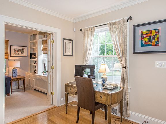 Exclusive Listing of The Maggee Miggins Group. If you or anyone you know may be interested in this home, please call Elyse Wolfe at 201-704-7747. Discover a blend of modern and traditional elements on four enchanted levels of storybook charm in this 4 bedroom, 1.2 bath colonial, in a terrific location, near schools, parks, shopping and dining. Loaded with updates. Freshly painted inside and out in a warm neutral palette, and sprinkled with dashes of colorful accents. Wood and tile floors throughout. Smiling exterior with pedimented front entrance, and an adorable arched gateway to the side yard. The vestibule's French door opens into an easy-flowing and welcoming living room. Details lend elegant ambiance: beautiful open stairway, dentil-carved crown moldings, soft recessed lighting. An attractive scalloped mantle envelops a white brick wood-burning fireplace. Oak floors continue into the adjacent formal dining area, with its matching pair of built-in display cabinets, crisp board and batten wainscoting, and swooping arcs of a handsome frosted sconce chandelier. The completely renovated and smartly designed kitchen perfectly blends texture and function. Raised panel maple cabinetry, in a warm honey finish, incorporate a large wall pantry, built-in wine storage, shelving niches, and glass-door display cabinets. White subway tiled backsplashes and a Kohler farm sink contrast beautifully with ebony honed-granite counters. Chrome and brushed nickel accents, including a single lever faucet. Enjoy full gourmet functionality with brand new top-of-the line stainless appliances: GE gas range, Broan hood, LG refrigerator, and Whirlpool dishwasher. On the opposite side of the living room, double French doors reveal a sun swept family room (or perhaps main floor office), with a wall of scallop-embellished built-ins to showcase beloved collections. Three spacious second level bedrooms have wood floors, wonderful natural light, and ample storage. The large master bedroom has both wall and walk-in closets. Built-in bookcases, a desk, storage drawers and cabinetry span an entire wall in Bedroom Two, in addition to wall and walk-in closets. The updated hall bath shines with a solid surface white vanity, tile floors, and tiled tub-shower. A fourth bedroom plus loads of closet and storage space comprise level three. Outside, you'll find a private oasis, with a spacious deck overlooking a level, manicured yard surrounded by tall hedges and mature evergreens. Carpeted/partially finished basement with recreation room, workshop, utility, storage, and half bath. Laundry with newer washer and dryer. New water heater. Alarm system. New window treatments throughout. Nice oversized two-car garage. Blacktop drive.