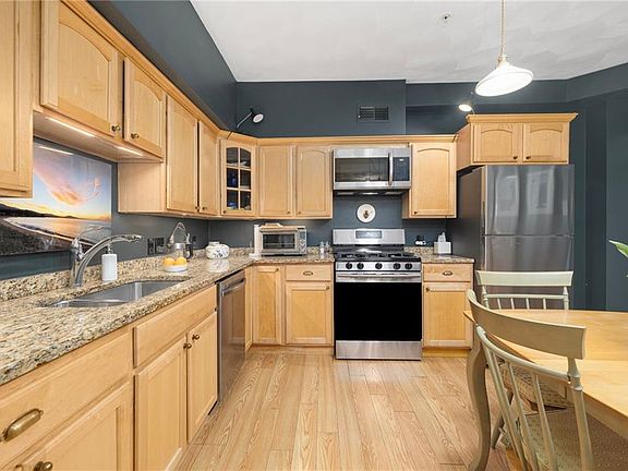 Welcome to Cove View Condominiums! Ideally located in the heart of historic Pawtuxet Village, this beautifully maintained 2-bedroom, 1-bath first-floor unit offers the perfect blend of comfort, style, and location—just steps from the waterfront, shops, restaurants, and all the charm of village life. Features an open-concept kitchen with granite countertops, ample cabinetry, and Samsung stainless steel appliances—including a brand-new refrigerator, newer dishwasher, gas range, and microwave. The thoughtfully designed layout boasts a spacious living area, perfect for both relaxation and entertaining. Down the hall, the generous primary bedroom features historic patterned wallpaper and a custom board-and-batten accent wall, while a second bedroom offers flexibility as a guest room or home office. Updated full bath with tile flooring, dual vanity and a luxury LED-lit mirror. Additional highlights: high ceilings, laminate flooring throughout, window shutters and ceiling fans in the bedrooms, gas heat, central air, in-unit laundry, two assigned off-street parking spaces and private storage just outside the unit. Live a vibrant community lifestyle with nearby cafes, yoga studio, parks, the marina and scenic cove. Enjoy local favorites like the Gaspee Days Parade, arts festivals, and the seasonal farmer’s market. With quick access to Providence and TF Green Airport, this condo offers both convenience and charm. The right time is now. Schedule your showing before it's gone!