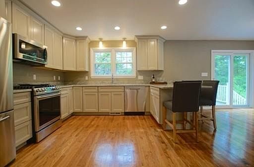 Welcome home to 31 Conant Rd. This completely remodeled & like NEW HOME will WOW you from the moment you enter. Unassuming, this 2,052 sq ft center entrance home is perfect for a variety of needs. The 1st floor master suite has an oversized walk in closet & luxurious full bath. Your custom kitchen with peninsula, granite & stainless flows into a dining space with slider, that leads to a beautiful composite deck. Open concept entertainers space flows into your spacious & bright living room. A half bath w/ laundry & closets completes this space. The second level has 3 large bedrooms, over sized closet spaces & full bath. No expense spared on finishes for this home. Designer lighting, custom cabinets, HW flooring, 2 zone central air, gas heat & more. An expansive basement w/ high ceilings & full walk out ready for your plans. Situated on a 12,423 sq ft corner lot of land, complete w/ detached garage. Minutes to Lynnfield, Rte. 1, 128, 95; Shoemaker School, Gowdy Park.