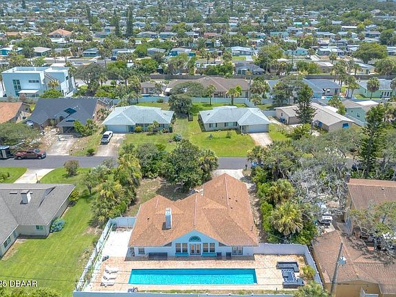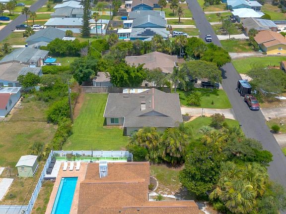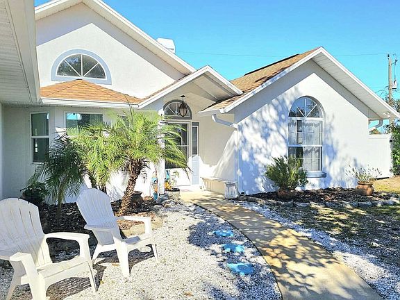 Remodeled beachside pool home with gorgeous heated lap pool now available! This incredible 3/2 home has it all! Once you've entered, you're greeted by a expansive great room under a vaulted ceiling with stunning views of the pool. The extensive remodel features recessed lighting, bamboo flooring, custom stained interior trim, tiled fireplace, new doors/trim/baseboards, gorgeous bathrooms and a chef's dream kitchen! The kitchen boasts of a super large quartz eat-at-bar, quartz counters, white shaker soft-close cabinetry, stainless steel appliances and a casual dining area. The primary features a huge 8x6 walk-in closet along with an additional closet just for your shoes! Relax in your jetted tub while enjoying your favorite beverage. The ensuite includes custom mirrors, lighting, custom hardware and a gorgeous vanity with double sinks. 2018 roof, pool, AC, 2024 water heater and a white vinyl privacy fence! There's even a huge raised flower/herb box for you to grow your very own garden!