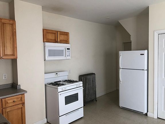 1st floor, large rooms, updated kitchen and bathroom. Laundry hook-ups in unit. Private deck. In 3-unit, non-smoking building. Off-street parking for up to 2 cars. Small trained dog under 25lbs and cats are ok. Gas steam heat. Tenant pays for all utilities. Good credit, good references and income verification required. 1st month and deposits of last month and security and $60 key fee all due prior to move in. 1st month and deposits of last month and security and $60 key fee all due prior to move in. Tenant pays for all utilities. Small trained dog, under 25lbs, and cats are ok.