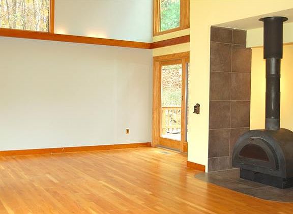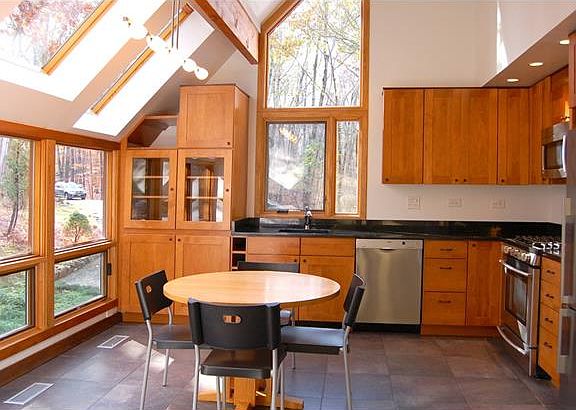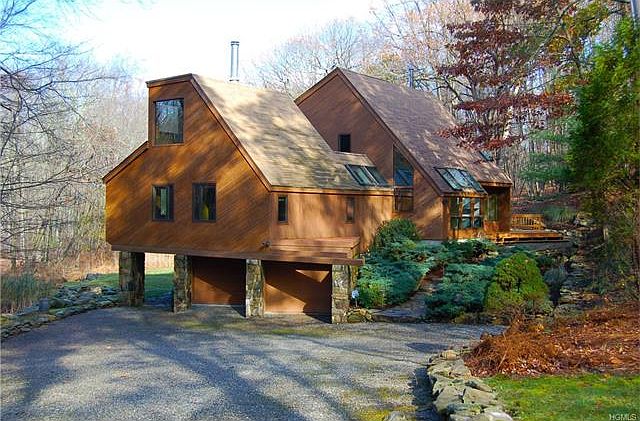 Newly listed contemporary nestled in the woods with its own pond- skate in winter and fish in summer! Lovely open flow, updated eat-in kitchen and wood burning stove. High ceilings and great light throughout. Master bedroom on the 1st level with fireplace, large full bath and walk-in closet. Library/den with fireplace and large storage rooms on lower level. Close to town and restaurants and easy to live in- perfect weekender/getaway!