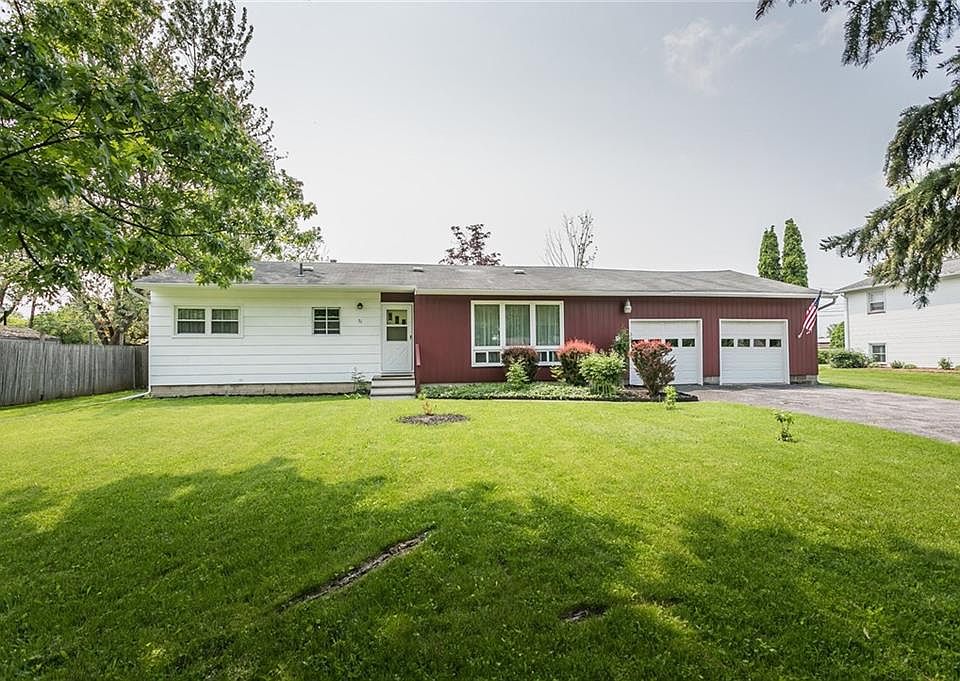Easy first floor living in Henrietta! Welcome to 31 Crimson Bramble Road. This 1,106 sq. ft. ranch style home offers 3 bedrooms & one recently updated full bath! Step into this sunlit home welcomed by lovely details like a glass mosaic tile floor in the entrance. Spacious living room overlooks front yard through custom built floor to ceiling windows! Eat-in Kitchen boasts ample cabinet space, and 1st floor laundry offers added convenience. Relax outside on the back deck overlooking lush gardens and trees, above ground pool & goldfish pond. Pride of ownership abounds!