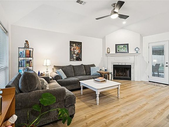 Enjoy cozy evenings by the wood-burning fireplace or relax outdoors under the new covered patio (2024) with a mounted TV that stays. The backyard features a new fence (2024) with a 12-foot rear access gate allowing for boat or trailer storage.
