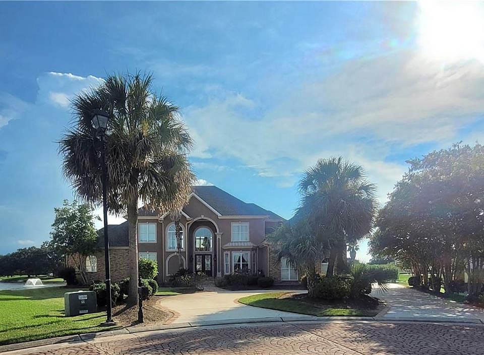 A must-see! This custom-designed home is nestled in a cul-de-sac within the gated Eastover community. It offers picturesque water views and landscaped gardens. The driveway, lined with crepe myrtle trees, leads to the attached garage and parking space. Whether you enjoy indoor or outdoor entertaining, the spacious layout is for family gatherings, business socials, game-day watch parties, and more! Designed for relaxation and outdoor festivities this home features a screened enclosure that houses a saltwater pool with cascading waterfalls, a heated spa, and a fireplace under the covered patio. Enjoy winding down and listening to the tranquil sounds of the waterfalls at sunset. Highlights: Breathtaking views, conveniently located approximately 12 miles from the CBD / French Quarter, a short drive to the NASA Michoud Assembly Facility, approximate drive time to NASA Stennis Space Center an hour, Community amenities Joe Brown Park, Audubon Nature Center, Schools, Shops, and Eateries. Accessible to the main highway and public transportation.
