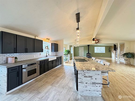1.24ac Farmhouse / Mini Farm! Tons of space for outdoor hobbies. Part factory built & part site-built permitted home. 2300sf home & over 1500sf shop & garage space. Subtle privacy, quiet dead end street. Fully renovated kitchen, new appliances & updated lighting. Granite island, concrete countertops to accompany new farmhouse sink. Vaulted ceiling & wood stove. Ample parking, outdoor firepits, built-in pit style BBQ, smokehouse & garden space. 1.5 mi to downtown Sequim dining & Olympic Discovery Trails.