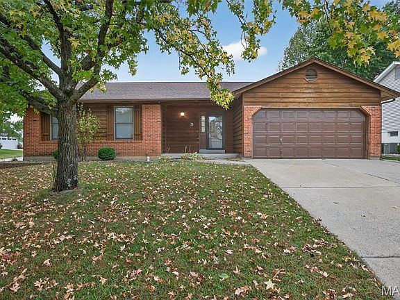 Welcome Home! This 3 bedroom and 2.5 bath open floor plan ranch sits in the heart of St Peters in Pegasus Farms in Francis Howell schools! Inside you will find new wood laminate floors that carry throughout the entire main level- even the bedrooms- no old carpet here! The great room offers a vaulted ceilings with wood beam and a brick wood burning fireplace. Newer atrium doors in the breakfast room to the covered patio and large flat and fenced yard. Two spacious secondary bedrooms share the hall bath. The large owners suite has a walk in closet and private bath. Downstairs to the finished lower level with half bath rec room with billiards table that stays, a marble top bar with sink, laundry area and plenty of room for storage! Some updates in kitchen and baths will be desired and the listing price reflects that consideration. BUT- the HVAC is just 30 days old, the roof is 6 years old. Spend your money and time making cosmetic changes to make this house your home- the bones are good and the price is set to move it!