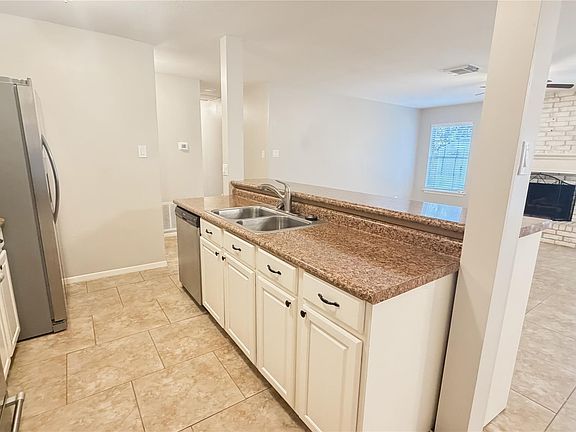 Cozy fireplaceOpen floor planInviting homeThree bedrooms