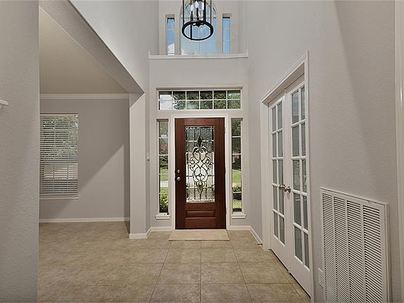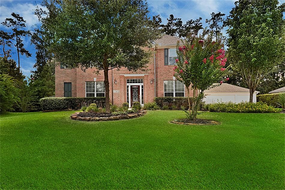 HOME WAS HIGH & DRY DURING HURRICANE! Beautiful cul-de-sac home on oversized greenbelt (2 sides) homesite in Sterling Ridge w/new paint in & out & new carpet. Enjoy & entertain w/the very large covered patio w/plenty of space for a pool, see survey. Extensive tile on 1st floor, kitchen includes new backsplash, micro & oven + open to large family room w/fireplace. Fully finished garage w/own storage & built in workbench/cabinets. Spacious master w/hardwood floors. Washer/Dryer incl.