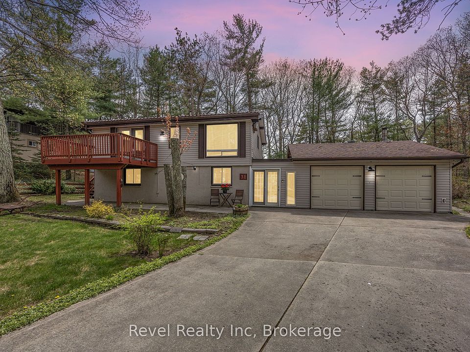 Offered for the first time, this charming year-round home or cottage captures the timeless appeal of Lafontaine living. Tucked away on a quiet street in one of the area's most desirable communities, it sits on a beautifully landscaped, gently rolling lot surrounded by mature trees and natural serenity. Step outside and enjoy multiple walkouts to spacious decks, ideal for morning coffee, family gatherings, or peaceful evenings beneath the stars. Inside, the home offers 3 bedrooms, 2 full bathrooms, and a warm, classic layout designed for relaxed, easy living. A double garage with inside entry, paved driveway, and breezeway connecting indoor and outdoor spaces add both comfort and convenience. Well-maintained and thoughtfully cared for, this inviting property is equally suited for full-time living or weekend escapes. The location is unbeatable - just a short stroll to public beach access on Georgian Bay and minutes from Lafontaine Beach Park, with its sandy shoreline and family-friendly playground. Enjoy local favourites like Tiny Treats, Wendy B's, and La Baguette within a 3-minute drive, or head to the charming waterfront towns of Penetanguishene and Midland for full amenities less than 20 minutes away. Need to stay connected? Bell high-speed internet is available. Whether you're ready to start a new chapter or continue a legacy of lakeside living, 31 Desroches Trail is ready to welcome you home.