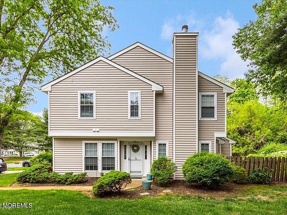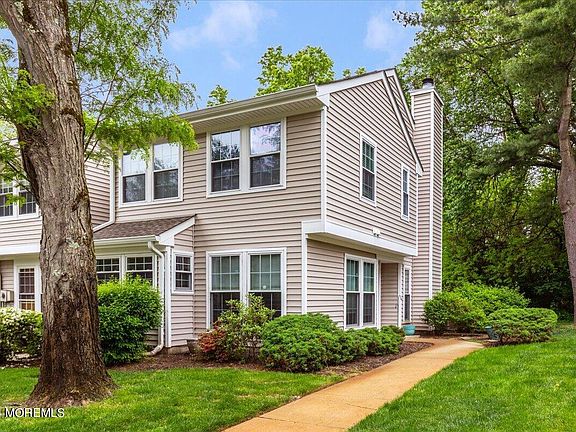 Welcome to the largest - 3 Bed/2.5 bath - unit at beautiful Patriot's Pointe! This tastefully updated end unit is a rare find. Newer ceiling height cabinets, granite counters, new gas range, laminate flooring upstairs, and updated light fixtures and more leaves nothing to do but move in. The master bedroom with walk-in closet has an en suite bath, with another full bath upstairs. The downstairs washer/dryer combo and storage are extra conveniences. Backyard backs up to a wooded area/ Henry Hudson Trail - with a very private and updated rear concrete patio. This quiet and well maintained complex is a short distance to downtown Freehold Boro's restaurants and shops and mall, as well as Route 9, 18 and other major hwys. Room sizes are approximate Photos taken before furniture removed from home.
