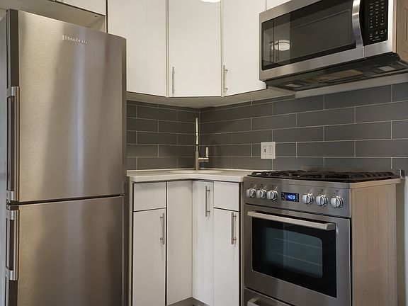 MINT, LUX RENO! Right off the corner of East 1st Street and 2nd Ave, at the crossroads of the East Village, Bowery and LES neighborhoods sits this charming, sexy, spacious and highly coveted corner studio unit with E. Houston exposure. Exquisite modern kitchen loaded with full premier stainless steel appliances, sexy matte gray tile backsplash, white lacquer cabinets, brushed nickel hardware finishing and LED lighting.