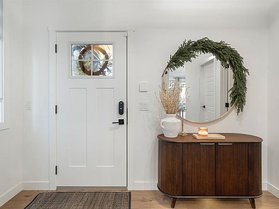 Quiet cul-de-sacWide open foyerBlack metal stair railsWarm timeless finishesWhite farmhouse sinkClassic cabinetryLarge deck