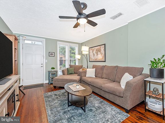 Historic Downtown living at its best! Walking distance to Marc train, and downtown! The minute you walk into this well maintained Circa 1800's home, you will appreciate the original hardwood floors and the natural light. The home has updated light fixtures throughout with original exposed beams in the kitchen! The kitchen was totally renovated in 2020 with soft touch cabinets, exquisite soapstone countertops, & new LTV flooring. The kitchen overlooks a custom built two level stone patio (installed 2020) with a wood pergola overlooking a large fenced in back yard. You almost forget you are in the city back there! Upstairs find two bedrooms and a lovely bathroom with a claw foot tub/shower, with large dressing area. As you make your way to the basement that was finished fully in 2017, you will appreciate this added space currently used for a gym, but has many other possibilities! The property also features a gated entrance to left of front door for easy access to back yard and storage of trash receptacles. Metal roof installed in 2023. Fence replaced 2023. Central air replaced in 2018. Heating is natural gas. Come see for yourself! Schedule today as this property will not last!