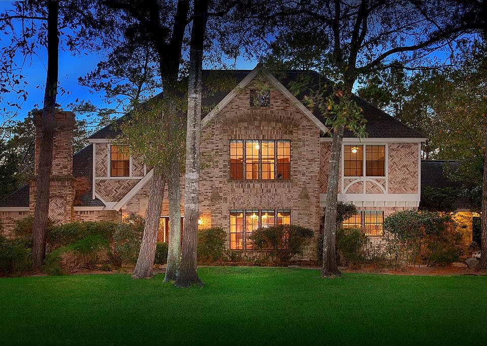 T.D. Cox custom home on an oversized lot in Grogan's Mill - close to I-45, Grand Pkwy, Market Street and Woodlands Waterway! Two staircases, detailed trim work, wet bar with wine storage, central vac, generous room sizes and abundant windows throughout the home. Island kitchen with granite counters overlooks breakfast room and den; wood paneled study with cozy fireplace; both formals; master retreat down; 4 bedrooms and game room up; 3 car garage + porte-cochere; expansive backyard features beautiful pool, spa, outdoor kitchen and covered patio surrounded by mature shade trees. Zoned to exemplary schools!