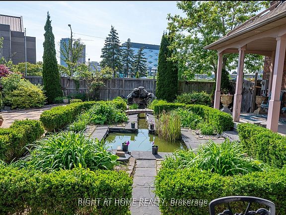 Contemporary Elegance. Experience modern luxury in this home situation in a sought-after Toronto neighbourhood.This property masterfully combines contemporary charm w/timeless sophistication, setting a unique standard for upscale living. Key Features Gourmet Kitchen: Marble Island, sunlit fam/rm w/patio dr, soft-closing cupboards, illuminated cabinets, Tranquil Oasis:Enjoy a front porch overlooking a picturesque Persian garden complete with a soothing waterfall, pond & fishes a perfect spot for relaxation & connect w/nature. Stylish Interiors: The bright living & dining area Modern Comforts: 4-pc ensuite Masterbdrm Prime Corner Home. Included: Fridge, Stove, B/I Dishwasher, Window Coverings, Elfs, Garage Door Opener & Remote, with smart phone. Zebra binds. Shared Washer & Dryer, Central Vac w/automatic dustpan in Kitchen. All Quartz sinks. Shelves and Cupboard. Location: It's more than a home; it's a sanctuary of modern elegance, convenience, and natural beauty. This home presents an opportunity to embrace a luxurious lifestyle in one of Toronto's most coveted locations. Don't miss the chance to make this hidden gem your very home. shared Laundry in the basement. Pictures - Furniture was from staging. Now current tenants have their own furniture. Tenant pays 2/3 All Utilities and Garden work. Main floor Tenant is responsible for own snow removal 100% from driveway, and entrance area and steps.