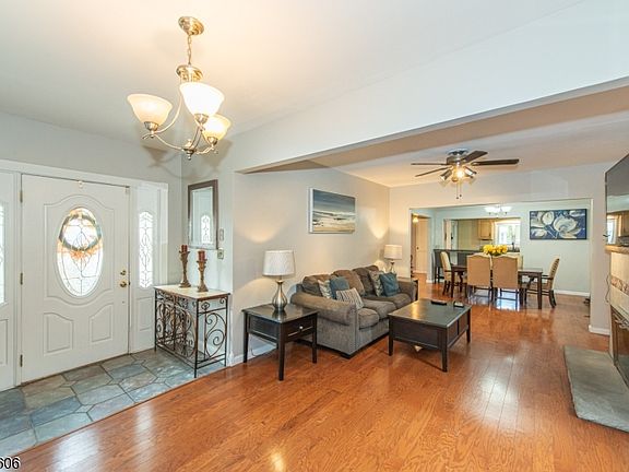 Welcome to this inviting 4-bedroom, 2-bath custom home located in Bloomfield's desirable Demarest section. Featuring hardwood floors and a bright, open layout, this home offers an ideal setting for both everyday living and entertaining. The main floor includes two spacious bedrooms and a full bath, while the second floor boasts a large primary bedroom with generous closet space and plenty of room for a sitting or home office area. The kitchen features granite countertops, stainless steel appliances and a convenient peninsula. The kitchen overlooks both the dining area and deck, creating a seamless flow for gatherings and letting you enjoy views of the backyard while you cook. Step outside to your private backyard oasis, featuring an above-ground pool (installed 2017) with a brand-new gazebo (2025); perfect for summer fun and relaxing weekends. The finished basement adds even more versatility with a comfortable family room, full bath, and bedroom, plus a washer and dryer for added convenience. Other updates include a repaved driveway (2020), a new garage roof (2024), and a hot water heater (2019). Owned solar panels provide additional efficiency and sustainability. Many rooms and spaces have been freshly painted. Situated on a quiet, lovely street with a golf course at the end, this home combines privacy, charm and convenience.