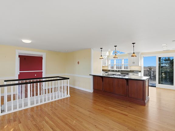 - AC, Ins, Irr, OSh, Floor 1: Front entryway with stairs to the second floor. The spacious primary bedroom suite has a recently updated bathroom with tile shower and a stack washer/dryer. Sliding doors from the primary bedroom lead to a deck with stairs down to the in-ground pool. Two additional bedrooms share a hall bath., Floor 2: The second floor is bright and inviting, with oak floors throughout. The kitchen features Wood-Mode cabinets, an island, and a sliding door to a deck with water views overlooking the garden and pool. The dining room has a gas fireplace, and connects to the spacious living room, which has interior doors for privacy. A wet bar with sink and wood cabinetry is conveniently located off both the living room and the kitchen. A powder room serves this level., Floor 3: Pull down storage.