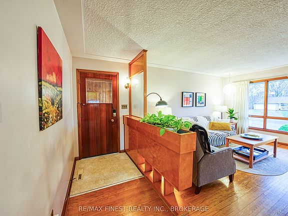 Tucked away at the end of a quiet cul-de-sac, this beautifully maintained mid-century home sits on a generous pie-shaped lot offering exceptional privacy and tranquility. Featuring 3bedrooms, 2 baths, and a unique covered porch entry connecting the garage to the home, this property exudes character and warmth. Highlights include gleaming oak hardwood floors, two cozy gas fireplaces, forced-air heating, and central air conditioning. The list goes on-this is truly a must-see home. Contact us today to arrange your private viewing! Recent updates include a new patio, furnace, A/C, fridge, and range (2025), basement gas fireplace (2024), basement floor and windows (2020), and a new roof (2015). A perfect blend of classic style and modern comfort-book your private viewing today!