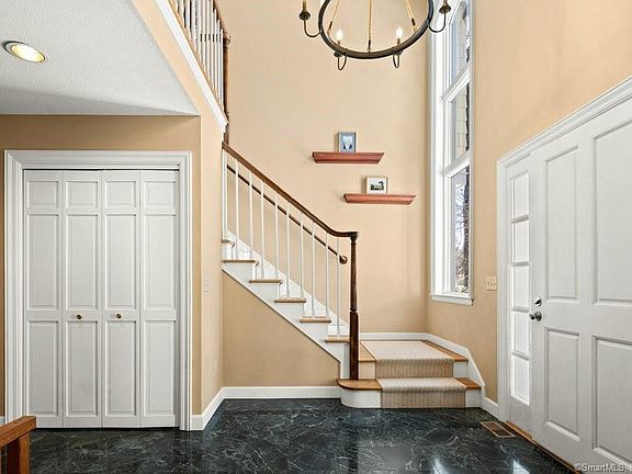 This 4 bed 2 bath colonial is one of only 19 homes located on Foxcroft Run, a cul de sac perpendicular to the 14th green at The Golf Club of Avon. With almost 3000 square feet of living space, you have plenty to enjoy in this home. Built-in 1991 the layout was ahead of its time with an open L-shaped kitchen/family room. The family room space flows beautifully into a four-season sunroom and onto the large deck. A new awning over the deck allows you to comfortably enjoy the outdoors during spring rains and summer heat. A large living room with French doors will provide homeowners with flexible space for a formal living room, game room, or home office. The main bedroom suite is classic with a large walk-in closet and renovated bath appointed with modern clean decor. Three additional bedrooms and an updated full bath complete the second floor. Ease of day-to-day living has been considered in the layout. The three-car garage has a staircase that leads to additional storage space. From the garage, and prior to hitting the hardwood floors, you enter an ample tiled mudroom, large laundry room, and powder room. The mudroom has access to the front and back yard. Should you need more space down the road the high ceilings and full window in the unfinished lower level allows for endless opportunities. Beautifully landscaped 31 Foxcroft Run would be a wonderful place to call home.
