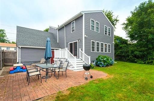 Expanded Cape style home - all newly renovated and updated. Exterior has new siding, windows, shutters, doors and cobblestone walkway and front step. New Trex deck, patio and shed. Fenced in backyard. Main floor is very open, living room with hardwood floors, working fireplace, built in bookcases and mantle, custom wood trim around windows and doors. New kitchen with ceramic tile floors, granite tile counters, stainless appliances. Dining area is hardwood, family room with hardwood, gas stove, built in bar, recessed lighting, French doors to deck/patio. Half bath with laundry room. Second floor has three large bedrooms, office room, brand new bathroom and storage area over garage. Interior has just been professionally painted throughout. Neighborhood Description This neighborhood is so convenient . Walking distance to South Braintree Square, shops, restaurants, salons, library, Frenchs Common, schools, Town Hall, etc. You can walk to the T in less than 10 minutes, and hop on all major highways. Easy access to Boston or the Cape. Family friendly neighborhood, very quiet.
