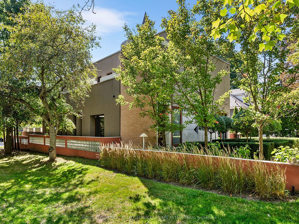 31 Governors Road is a European-inspired contemporary villa designed by Francesco and Aldo Piccaluga, the award-winning brothers whose work helped shape a distinct era of Toronto architecture. Conceived of as a villa in the city, the home is a study in contrasts: privacy without loss of light, openness alongside clearly defined rooms, and natural materials set against brick and concrete. Completed in the early 1990s and cared for by only two families since, the home balances architectural pedigree & high design with remarkable adaptability. The current owner has infused elements of play and light, yet the design could easily accommodate traditional, contemporary, or eclectic sensibilities. At its core, a dramatic marble staircase anchors the flowing layout. The custom Valcucine kitchen is finished with natural stone and high-end appliances, opening seamlessly to a 600-square-foot entertaining terrace. The expansive living room, warmed by a wood-burning fireplace, is softly lit through glass block throwing light against Venetian plaster walls, creating intimacy and comfort. Upstairs, the serene primary suite features a six-piece spa-like ensuite and a walk-in closet with striking boudoir. The lower level continues the theme of retreat and versatility: a saltwater indoor pool and exercise area invite restoration, while an oversized recreation room with kitchenette can readily adapt to serve as an in-law or teen suite. Ingeniously designed moats flank the foundation, allowing full-sized windows that fill the lower level with light and fresh air. Outside, Mediterranean hues of burnt clay and soft white highlight the bold geometric volumes so emblematic of the Piccaluga Brothers work. The result is both iconic and timeless. 31 Governors Road is an architectural triumph and an enduring postmodern masterpiece in the heart of Toronto that is not to be missed.