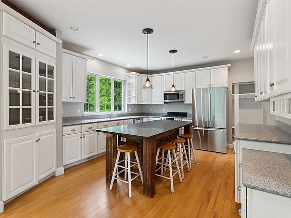 Tucked away on an exceptionally private 3.24-acre lot, this stately Colonial offers the perfect blend of charm, space, and serenity—just 1.5 miles from Gorham Village. Set in a quiet 10-home subdivision, this well maintained residence welcomes you with a classic front farmer's porch, ideal for relaxing and taking in the expansive front yard, framed by mature trees for unmatched privacy. Inside, the grand front staircase makes a stunning first impression, leading to a thoughtfully designed second floor featuring three spacious bedrooms. The highlight is an impressive primary suite with two walk-in closets and a luxurious full bath complete with a Jacuzzi tub. One of the secondary bedrooms was originally two rooms and could easily be converted back to create a fourth bedroom. The first floor is designed for both everyday living and exceptional entertaining. A large, open kitchen flows effortlessly into a front-to-back living room with soaring cathedral ceilings and a striking stone fireplace. A formal dining room adds elegance, while a well-equipped mudroom includes a half bath that conveniently services the pool and outdoor spaces. Step out back to your own private oasis—an expansive deck overlooks a fully fenced, in-ground pool area surrounded by mature landscaping and hardscaping, perfect for summer gatherings or quiet mornings by the water. Additional features include a large basement with a partially finished space ideal for a playroom, home gym, or office. The unfinished portion of the basement offers ample built-in storage shelves, a dedicated workshop bench, and abundant additional storage space, along with convenient access to all the home's utilities. If you're looking for space, comfort, and true privacy with close proximity to Gorham Village amenities, this home is a must-see. Showings begin at the Open House on Sunday, 5/25 from 11:20 AM - 1:00 PM.