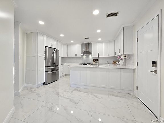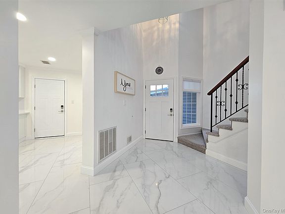 Inside, you’ll find a completely updated custom kitchen featuring quartz countertops, subway tile backsplash, premium stainless steel appliances, a reverse osmosis water system, and ceramic flooring. The open concept layout is enhanced by crown moldings, LED hi-hat lighting, and modern finishes at every turn.