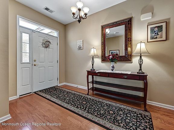Stunning desirable ''Martinique'' model w/dramatic open floor plan & high ceilings located near the clubhouse of Four Seasons @ Manalapan. Hardwood flrs in most rooms. G/R features Palladium window, gas fp & custom built ins. Open to eat in kitchen with 42'' custom cabinetry, granite counters tops, new GE ref, double GE range/oven & tiled back splash. Bright & airy sun room leads to custom paver patio & walkway. Exp MB suite w/bay window & custom WIC. Updated master bath includes whirlpool tub, frame less shower door, granite, new sinks & faucets. Extended garage w/walk-up storage area. Decorative moldings. Community features 29,000 Sq. Ft. clubhouse, State of The Art fitness center, indoor & outdoor pools & spa, tennis, bocce & so much more