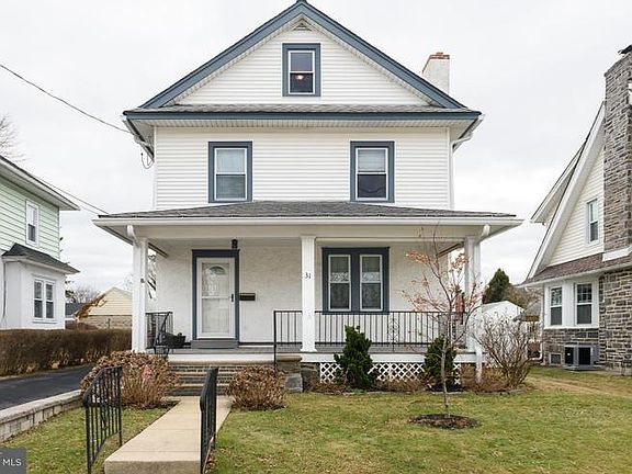 Charm and character personified! Seeking the quintessential Colonial that features original hardwood floors, arched doorways, a spacious front porch, & a "walk to everything" Havertown location, yet is situated in a neighborhood offering quiet surroundings, block parties, etc? But ? also displays updated baths (one full/2 Powder Rms), newer central air, replacement windows, newer high efficiency heating system w/four zones, a finished basement, walk-up attic, partially fenced yard and neutral d~cor? Come take a look at 31 Harvard Road and prepare to be enchanted. The covered front porch, with roller shades for privacy or sun management, is the perfect setting for relaxing evenings and weekends -- even in rainy weather -- and leads directly to the front entry where a well proportioned, hardwood-floored Living Room offers bright windows and a wood-burning stone fireplace. Just adjacent, through an arched doorway, is the family-sized Dining Room with chair rail and a view to the level back yard. Featuring ceramic tiled floors, the windowed Breakfast Room displays a vintage built-in corner cabinet, recessed lighting, and chair rail. Informal meals will contain an element of fun, thanks to wall areas embellished with chalkboard paint. A Powder Room is located between the Breakfast Room and the adjoining Kitchen. Here you will find solid surface counter tops/ceramic tile backsplash & flooring/electric stove/dishwasher/microwave/disposal, and refrigerator (included). Recessed lights & a double window overlooking the back yard add brightness. Three bedrooms on the 2nd floor, including the master, feature plush neutral carpeting (hardwoods beneath) & ceiling fans; a staircase leads to the finished attic (used now for storage: closets/crawl spaces/built-in cedar chest) but could be guest room/home office/or workout area. The bedroom-level full Bath has been beautifully remodeled: graced w/a spacious granite-topped vanity, marble tile floor, tub w/shower, & privacy window. N