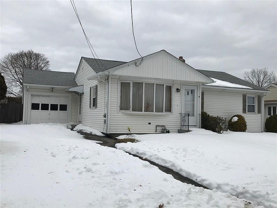 You can move right into this classic 60's ranch. Many mechanical updates including newer roof with architectural shingles, vinyl siding, replacement windows, newer heat and hot water. Hardwoods under carpeting, central AC. Partially finished basement with summer kitchen, bath with shower stall, HUGE walk-in cedar closet, and tons of storage. Attached garage and nice flat fenced-in backyard. Convenient to highways and shopping.
