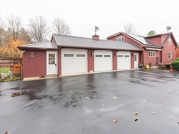 This captivating Cape perfectly melds country charm w/ updates! Knotty pine shines throughout—from wide plank floors to exposed timber beams & wood ceilings. The kitchen w/ center island flows into the dining room & living room, creating an inviting main-level gathering space. Desirable 1st floor features also include a primary suite accented with cathedral ceilings & private bath as well as a guest half bath & laundry closet. Upstairs, find another primary bedroom w/ private suite along w/ 2 additional bedrooms & a full bath. The heated, insulated 3-car garage includes a workshop w/ woodstove & 2 entry points. Transferable leased solar, new HVAC, & heat pump mini-split provide energy efficiency. Outside, enjoy a fenced yard, patio, perennials, storage shed & ample off-street parking. Character, comfort, & space to spare w/ a partially finished basement as well! Stop by & see this country charmer!