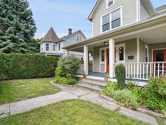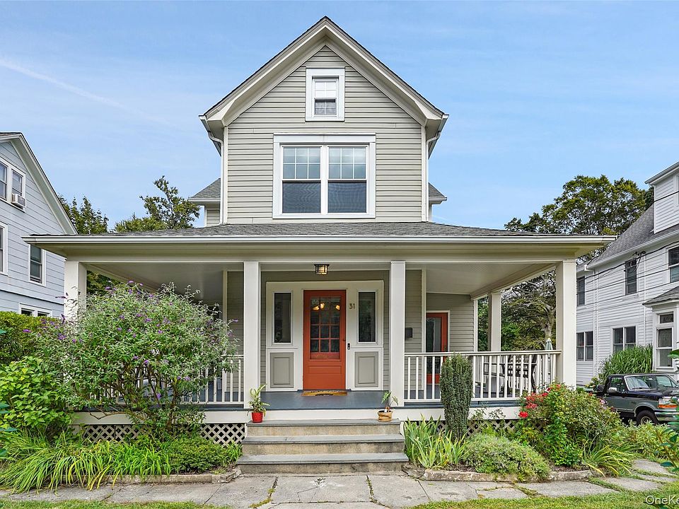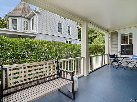 Picture-perfect 3 bedroom / 3 bath Village gem, located on the highly coveted Hillside Avenue, puts you a stone's throw from everything Hastings-on-Hudson has to offer. Schools, playgrounds, restaurants, and Metro North are all just steps away. Move right into this charming and recently updated colonial. Built in 1905, this home retains the period details one might expect, such as 10.5 ft ceilings, gleaming oak floors, and a welcoming wrap-around front porch. Updated and renovated for today’s lifestyle, the first-floor features include a windowed eat-in kitchen with stainless steel appliances, a formal dining room, a full bath, a cozy living room, and an adjoining sitting/family room that can also serve as an office or playroom. Go upstairs in this exceptionally sunny and cheerful jewel of a home to find the generous primary bedroom with a walk-in closet and renovated en-suite with a marble shower. There are two more well-proportioned bedrooms on that floor and an adorable third full bath with a claw-foot bathtub. Downstairs, the unfinished basement has high ceilings, backyard access, laundry, a modern high-efficiency tankless boiler for heat and hot water, and loads of storage. Beautifully landscaped with mature privacy hedges in front and a fenced-in yard out back, this home is a peaceful oasis to relax or entertain both inside and out. For more information, or to schedule your private viewing, kindly email.