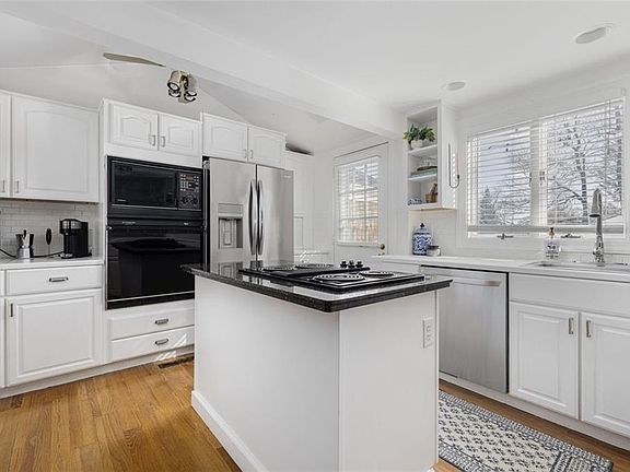 With its charming decor and wonderful curb appeal, this warm and inviting Cape Cod home is a true gem. As you step inside, you will notice hardwood floors throughout all of the living areas and the kitchen, which is equipped with stainless steel appliances, center island cooktop, ample cabinetry and recessed lighting. The formal dining space, featuring custom moulding, is a charming and elegant setting for gatherings. In the living room you'll be greeted by the ambiance of the wood burning fireplace, providing a focal point to the space. The home boasts three large bedrooms for comfortable living. The primary bedroom, located on the first floor, has a cozy gas fireplace, vaulted ceiling and walk in closet. The recently updated full bathroom, also on the first floor, is stylishly appointed and features modern fixtures. Upstairs is a half bathroom and two additional generously sized bedrooms with hardwood floors underneath the carpet. Venture outside to the large private back deck with bistro lighting. The perfect spot to savor a morning cup of coffee or an evening refreshment while overlooking the manicured, fenced backyard and playhouse. Additionally, the home has a one car garage, shed and a partially finished basement for extra living space or home office. This beautiful home, in a desirable location, provides convenient access to shopping, local amenities, and major highways.