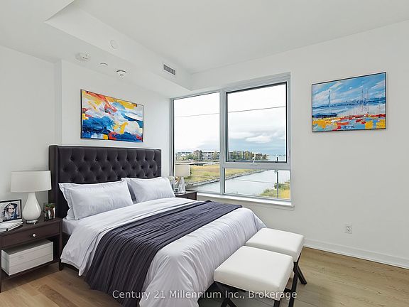 Unbelievable views from this brand new, bright and airy corner end unit in Collingwood's newest condominium community. Welcome to Harbour House in downtown Collingwood, across from the harbour with breathtaking views of Georgian Bay, Collingwood Terminals, and Blue Mountain Escarpment. Enjoy this upgraded 2 bedroom, 2 bathroom home with one level living including 1000 sqft of finished living space plus a 100sqft balcony. Offering a beautiful waterfall quartz countertop with matching backsplash; built-in, hidden dishwasher; modern, coastal flooring; and a desirable open-concept layout. Enjoy a fully equipped exercise room, dog wash station, guest suites, underground parking, fobbed entry and storage locker in a Scandinavian-inspired, architecturally stunning building which captures the nature-centred community perfectly. Located steps to groceries, pharmacies, restaurants, trails, live music, shops and more. A short drive to beaches, ski hills and golf. Collingwood is a true four-season playground, and whether you are looking for a place to hang your hat on weekends, or a home in which to grow your roots, this is the perfect place to soak in the amazing Southern Georgian Bay community.
