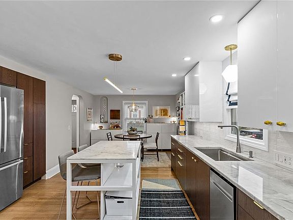 Nestled in the desirable Eden Park neighborhood of Cranston, this beautifully updated Cape-style home is just a quick drive from the vibrant Garden City shopping area. Inside, you'll find a stunning renovated kitchen with sleek quartzite stone countertops and high-end stainless steel appliances. The kitchen is complemented by new hardwood flooring, and the rest of the first level features refinished hardwoods throughout. The cozy dining room offers an intimate space for meals, while the oversized living room with a charming fireplace provides a welcoming area for relaxation. Adjacent to the living room is a bright and versatile Florida room or office, perfect for working from home or enjoying sunny days. Upstairs, the gorgeous renovated bathroom features radiant heated floors, adding a touch of luxury. Two generously sized bedrooms provide ample space for rest and retreat. The lower level adds valuable additional living space, along with the home's mechanicals. The property boasts all new Harvey windows with upgraded hardware throughout, a brand-new steam heat boiler for comfort, and fresh paint throughout, giving the home a modern and inviting feel. Outside, the fenced-in yard features a new patio area—ideal for entertaining, gardening, or simply enjoying your private outdoor oasis. This home offers the perfect blend of style, comfort, and location. Don't miss the opportunity to make this meticulously maintained property your new home!