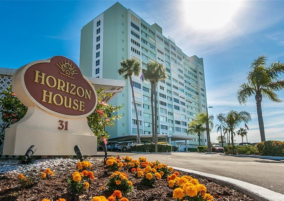 PRICED TO SELL TODAY!!! A one bedroom facing directly at the GULF with amazing BEACH VIEWS. Unique entry has tons of cabinet space that leads out to the open living/ family room with FULL WATER views. The bathroom has also been partially updated and ample closet spaces in condo with full hallway linen closet. All rooms have ELECTRONIC HURRICANE SHUTTERS with newer scroll down blinds. Merely add some TLC to the kitchen in upgrades and you have a great beach getaway condo. Finally this community manages everything on your behalf with monthly fees to include Electric, Water, Sewer, Trash, Building maintenance, lobby attendant, property manager, insurance, AC, Water Heater, full generator, a large heated pool, stunning lobby, community recreational meeting room, basic cable, and first floor internet. Each unit has a private spacious storage closet with a laundry room on every floor. Please do keep in mind that the building is a CO OP so that has no rentals. However 31 Island way is the first building on the island, the perfect location to walk across the street to Island Way Grill, down the road to Publix, the UPS store, a whole plaza complete with a Sushi restaurant and Windward Bar Grill, plus a convenience store so you never have to leave the island yet are minutes from the beach. The famous Clearwater Aquarium sits one block from the Horizon House as well. Come immerse yourself in amazing GULF OCEAN VIEWS!!!