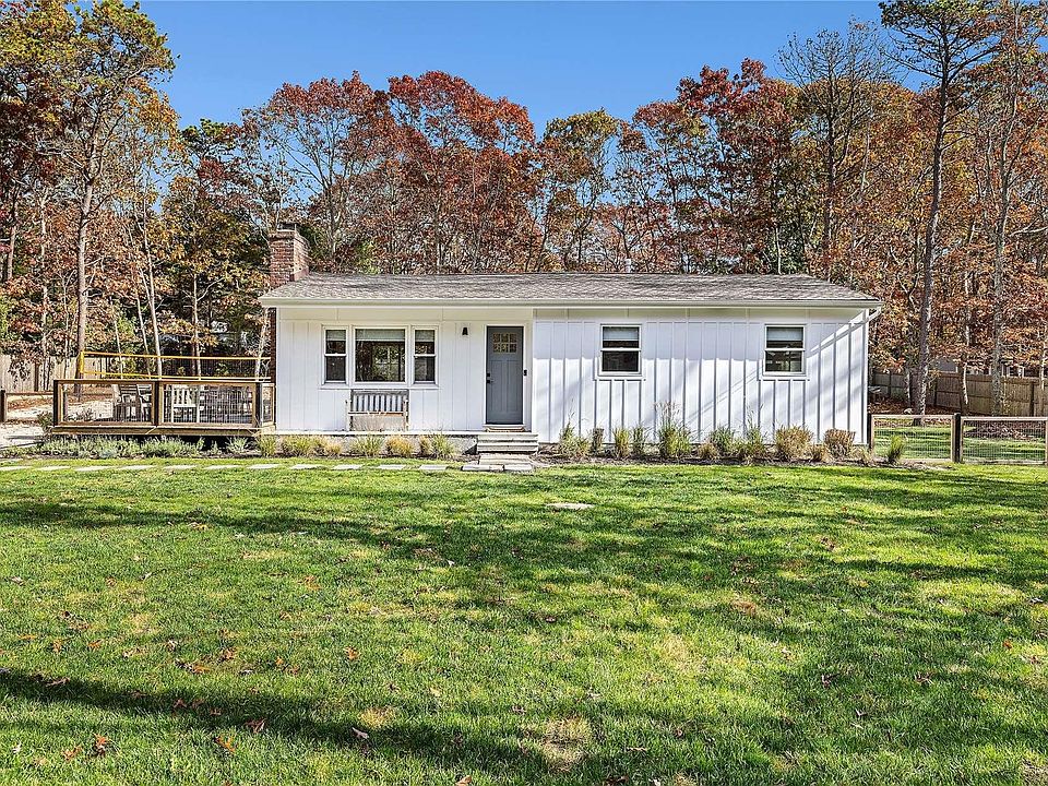 This wonderful gem was just completed In late 2022 ,located in the desirable Tiana shores section of East Quogue /Hampton Bays Boarder, this ranch house is the perfect beach house-light, modern, tasteful and clean and set on shy half acre on Jones rd. As you enter through the front door into the open living first floor with living room and fireplace with vaulted ceilings, kitchen and dining with sliders to the expansive backyard with room for pool plus three nice size bedrooms, new bathroom and laundry area. Some additional amenities are Oak hardwood floors throughout, CAC, irrigation and new appliances Home has room for pool plenty of expansion possibilities. close to town and Ocean beaches .Plus Home has rights to Join the Tiana Shores Association with Beach access ., Additional information: Interior Features:Lr/Dr,Marble Bath
