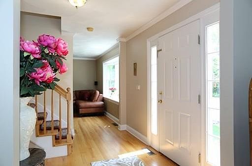 Eastside. Beautiful and inviting young colonial located on quiet cul-de-sac. This fine home offers 3 floors of living space complete with 4 bedrooms and 2 and a half baths. Come fall in love with open & flowing floor plan boasting a sunny foyer, fireplaced formal living room, dining room with custom moldings & hardwood floors and a family room with large bay window ... perfect for relaxing & entertaining. Handsome gourmet cherry kitchen with hardwood flooring, custom built-in hutch & an eat-in area with exterior access to deck. Vaulted master bedroom with private master bathroom and large walk-in closet. Three generous bedrooms with shared gorgeous full bath, plush carpets and lots of closet space. Beautifully finished lower level with play room & office/exercise room. Fabulous gently sloping rear yard (partially fenced-in), over-sized deck, 2 car garage, Central Air, Gas Heat, public water/sewer. Minutes to golf, parks, trails & shopping. MINT!