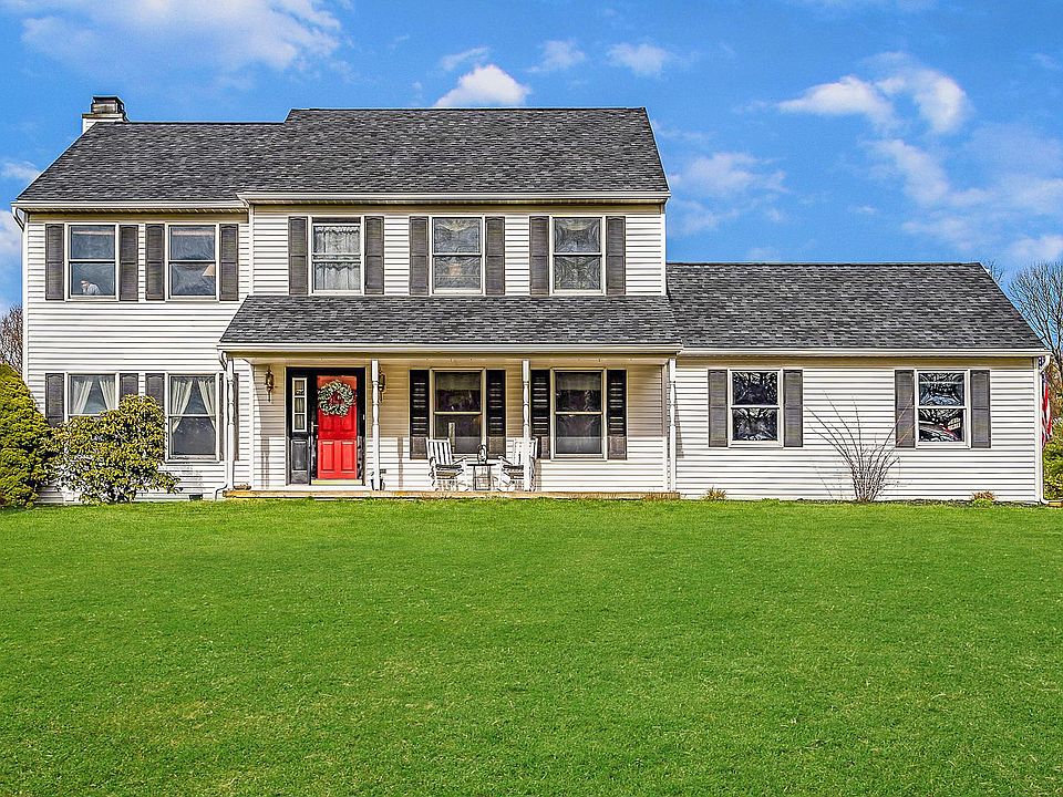 This delightful colonial home in Black Horse Farms is nestled on an exceptionally delightful lot and just minutes to the Pennsylvania Turnpike and Downingtown East and STEM Schools. The covered front porch beckons you to step right in but be sure to come back and sit for a bit in a rocking chair with a glass of lemonade! Central to modern conveniences you will be sure to enjoy privacy in this charming and well maintained four bedroom, two and a half bath home with spacious living and an absolutely amazing yard for fun and games. You are sure to love the open floor plan of the chef's kitchen and cozy family room with a fireplace featuring gorgeous views and access to the expanded deck and yard. Entertaining is a breeze in the gracious hardwood dining room and newly carpeted living room boasting more of the naturescape beyond. An updated powder room and access to the two-car garage round out the first floor. Make your way to the newly carpeted second level where you~ll find four generously sized bedrooms including the master suite offering en suite bathroom updated with his and her vanity and separate glass-enclosed shower. Another oversized bath serves the additional three bedrooms any of which are ideal for the work from home lifestyle. The finished lower level provides family fun and games all day long. A separate laundry, storage, and workshop area is a tremendous bonus to this space. Enjoy this cozy home in a park-like setting convenient to Marsh Creek Lake and Bryn Coed, outstanding schools, major roadways, and commerce. A truly lovely home in a wonderful location makes this a win! Come and ENJOY!!