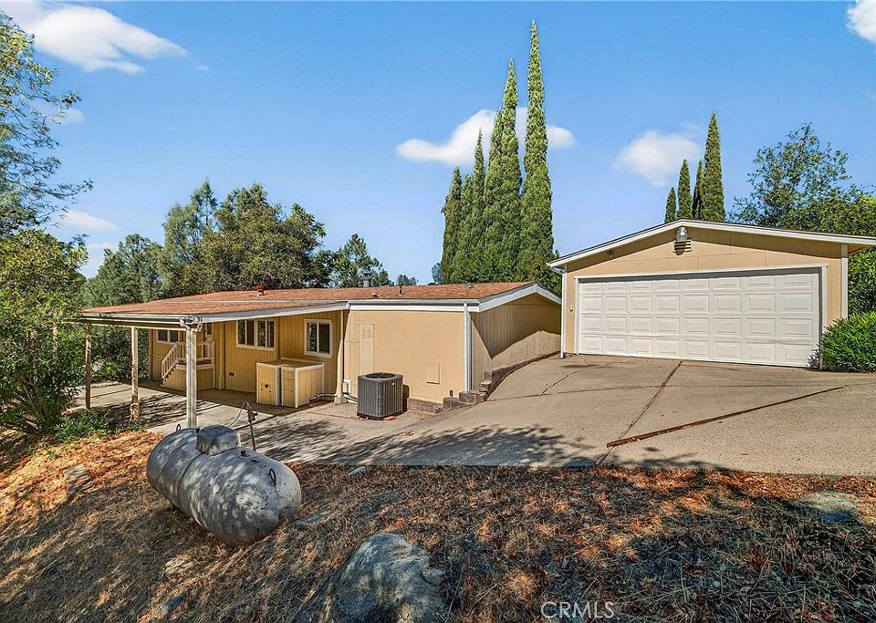 Welcome to the Kelly Ridge Community! Just minutes from Bidwell full-service marina and Oroville Dam. This home is ready for a new owner. The 1,680 square foot home offers a large living room and separate family room! Newer 2022 Ac unit, upgraded dual pane windows, luxury plank flooring throughout, newer roof, updated interior and exterior paint, primary bath vanities, updated shower/tub in both bathrooms. This home has a private setting with the lot to the south has no home. The kitchen has vaulted ceilings, built in propane range, dishwasher, built in oven, pantry, tons of cabinets, stainless sink and breakfast nook area. The living room off the double door entry has vaulted ceilings, private views and transom windows above the picture windows. Off the huge laundry room is a second living room with built in bookcase. The primary bathroom has 2 vanities, tub/shower combination and linen cabinet. The guest bath also offers a tub/shower combination. Off the kitchen is a concrete patio measuring 13'X35'. The covered carport measures 10'X46'. The detached two car garage has keyless entry, window and back man door entrance. This home is move in ready! Enjoy all Lake Oroville and the surrounding foothills has to offer.