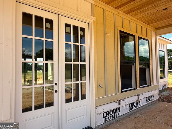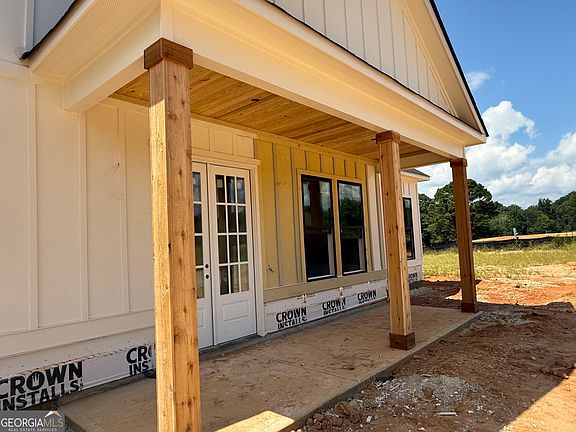 LAKE FRONT PROPERTY sitting beautifully on Lake Jane. NO HOA....new home under construction is the Rosehill floorplan, 4 BR/3.5 BA beautiful Farmhouse Ranch style home on 5.42-acre lot. This home is built on a slab with beautiful features including a stone water table on all four sides with stone accents, black window package, hardi plank siding, rear side entry with 18 ft garage door with opener, 30 Year architectural shingles, 5" gutters. Kitchen with large walk-in pantry, beautiful upgraded wood inset cabinets, island, farmhouse sink, quartz countertops in the kitchen and master bath, granite countertops in the baths, beautiful Cafe brand stainless-steel appliances including a range, dishwasher, microwave AND refrigerator. Dining Room with 10 ft ceilings, Spacious Living Room with fireplace and open concept plan,Office, split bedroom plan,finished bedroom with full bath upstairs, ceramic tile flooring in baths, hardwood flooring throughout. Master bathroom has his/her split double vanity, ceramic tile shower, huge walk-in closet. Upgraded closet systems throughout. This home will feature a 12 ft dual bifold door (3 pane sliders each 4 ft in size that will give you an open 12 ft door area) that opens to the covered rear back porch area with flag stoned flooring with a breathtaking view of the lake. Closing attorney is Bagby Law in Dallas, GA. When using the preferred lender, Marybeth Zimmerman with SWBC Mortgage the buyer will receive a $3,000 credit towards closing costs from lender*****Builder may make changes/substitutions****. *****plan shown is rendering and some changes made be made by the builder****.