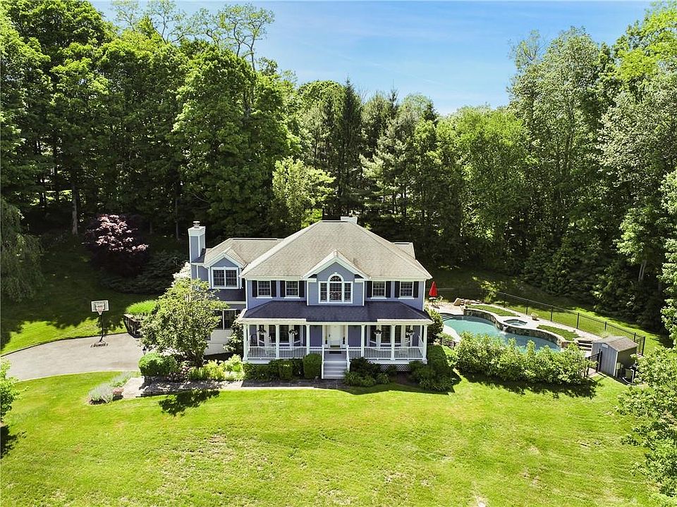 Set majestically on one of many of Michelle Estates' rolling hills, this stunning front porch 4BR/3.5BA center hall colonial with in-ground pool offers the perfect blend of privacy and convenience within a highly sought-after and well-established neighborhood. Michelle Estates residents benefit from community sewer and water, award-winning Katonah-Lewisboro schools as well as close proximity to everything needed to live a relaxed country lifestyle. Embodying comfort and elegance, a welcoming entry foyer leads to the open living room /dining room on one side and a large home office on the other. A bright eat-in-kitchen includes a well-designed entertaining bar which provides extra gathering space alongside the cozy family room with wood-burning fireplace. Upper level has primary bedroom complete with ensuite spa bath and large walk-in closet, hall bath and three other generously-sized bedrooms. Lower level is nicely finished with recreation/media area, full bathroom, gym, laundry, storage, utilities and garage access. The property outside is spectacular; a lush paradise surrounded by tall trees, mature plantings, flowering bushes and stone walls providing seclusion for the gorgeous, in-ground heated free-form pool/spa with rock wall/waterfall and a pergola-covered stone patio. Meticulously-maintained inside and out with lots of extras including central vacuum, landscape lighting, sprinkler system, electric fence, water softener, built-in closet shelving, transfer switch for portable generator and even more! Minutes from I-684, both the Katonah and Golden’s Bridge Metro-North train stations, John Jay Middle/HS campus, Increase Miller Elementary School and local shopping. A very special offering, so don't wait! Additional Information: Amenities:Pedestal Sink,Storage,HeatingFuel:Oil Above Ground,ParkingFeatures:2 Car Attached,