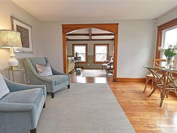Classic Mid - Century Home that has just had top to bottom, in and out renovations that preserved all that was important about that era. Oversized bedrooms, hardwoods throughout, stone fireplace, dramatic period kitchen updated with granite and stainless steel appliances. New custom dinette (Diner Style with Granite). 3 Huge bedrooms, central air, garage, classic 50's finished basement all updated with wet bar and playroom. New garage door, newer heat, alarm, windows, roof, and electrical. The bathroom is a magnificent updated version with pristine condition period tile, new vanity , fixtures and custom glass enclosure. Private stone wall lined yard has hilltop views overlooking stunning Pawtuxet River Valley. Not to be missed by the buyer that appreciates this period. Lives like an oversized walkout Ranch but has a huge 2nd floor bedroom.