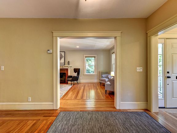 Sparkling 1920's center hall Colonial freshly painted both inside and out! Sunny open layout with gorgeous oak and pine floors throughout. Spacious front-to-back living room with a working fireplace. Formal dining room. Recently redone kitchen features white cabinetry, quartz counters, and new stainless appliances. Powder room. The 2nd floor has a large master bedroom with a walk-in closet and its own access to the hall bathroom, 2 additional bedrooms, and a wonderful deck with easy access off the hallway. The 3rd floor offers 2 more bedrooms, a bath, and a study. Energy efficient Pella replacement windows. Recent architectural shingle roof. Updated mechanicals including central air conditioning. Sweet partially fenced backyard with an attractive patio made of pavers. Convenient detached 2 car garage. Great location - an easy walk to College Hill, Moses Brown, and Wheeler!